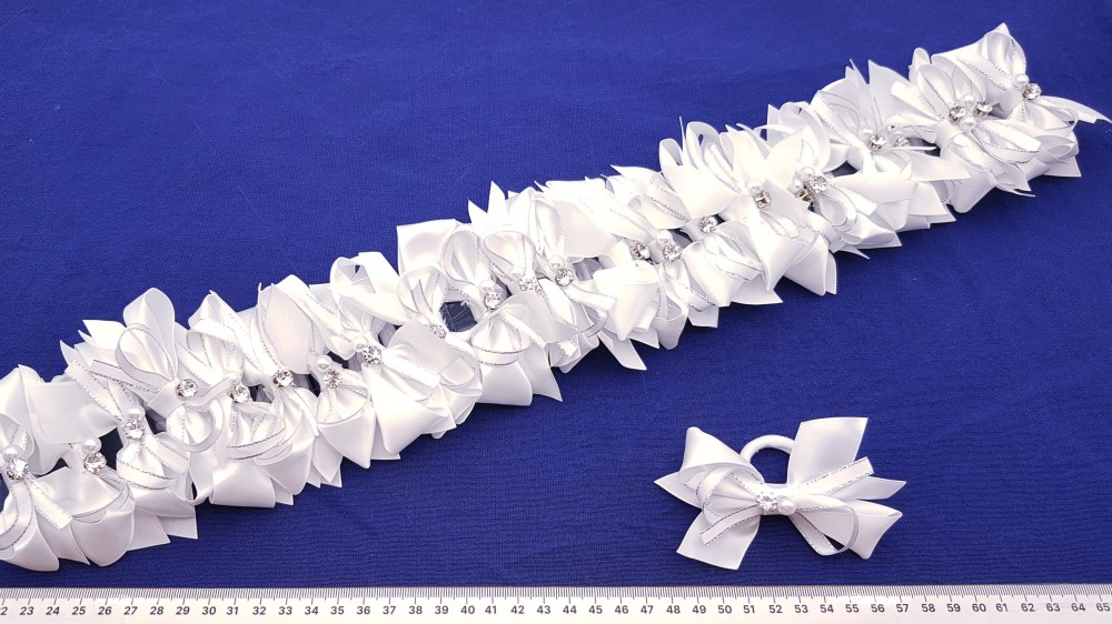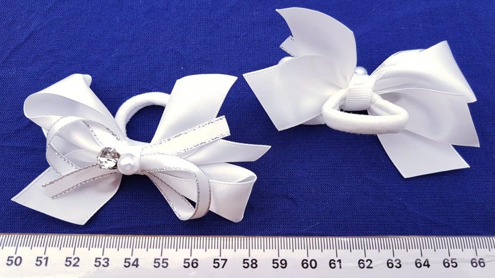 Атлас, жемчуг, страз, нейлоновая резинка. Бант 9 на 5 см. Резинка 3 см