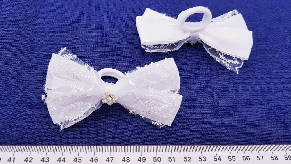 Атласные банты на резинке белые цветок 10 KP-5770