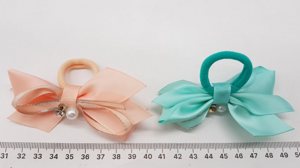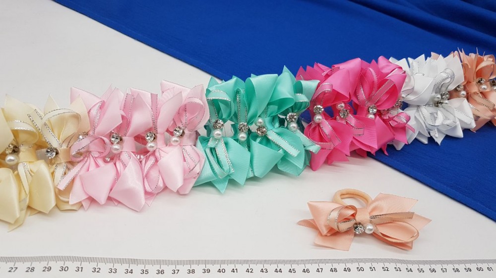 Бант из атласной ленты 10 см  ширина 4 см, украшение жемчуг и страз, Резинка 4 см