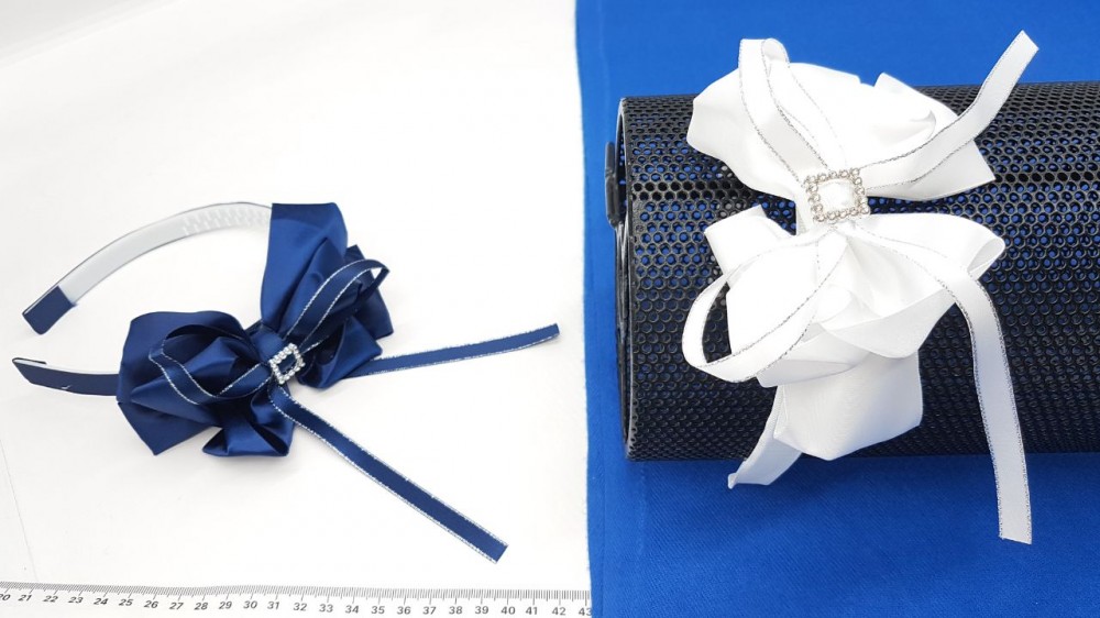 Ободок 1,5 см. Бант из атласной ленты 13 см, бант из узкой ленты длинна 21 см ширина 1 см Синий и белый