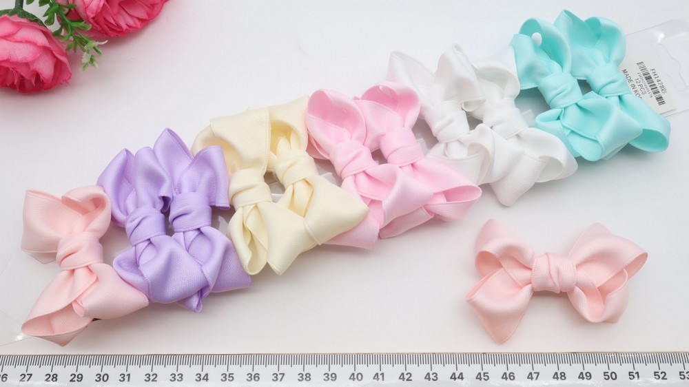 Бантики для волос на зажиме светлые 8 см FH-1478