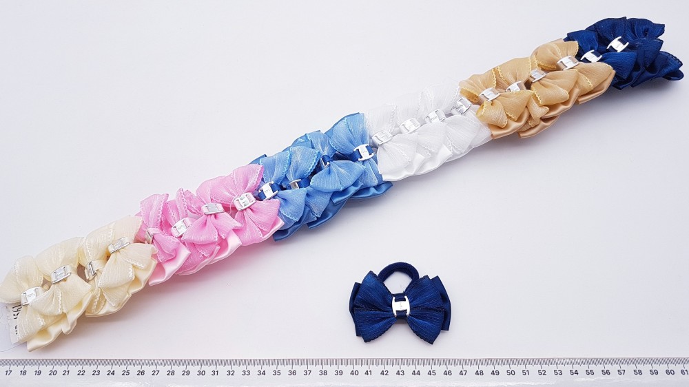 Атлас, органза, пряжка, нейлоновая резинка 3 см. Бант 7 на 4,5 см.