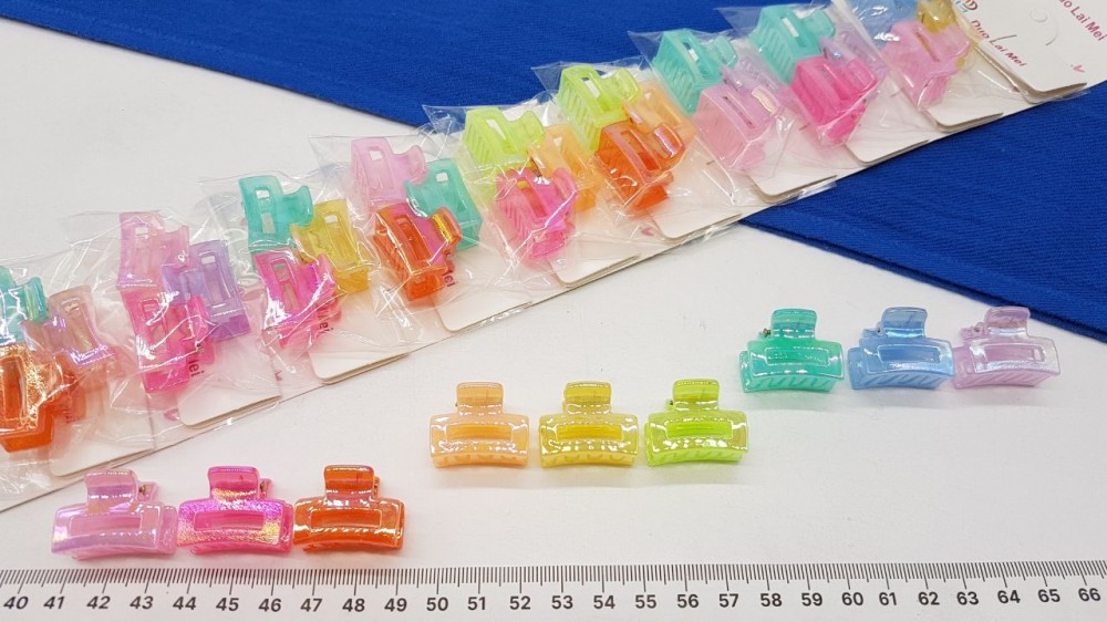 В упаковке 10 наборов по 3 штуки на бирке. Материал пластик цветной хамелеон 2,5 см на 2 см