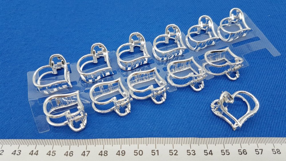 Краб для волос сердце серебро 2 см KG-359AA-24