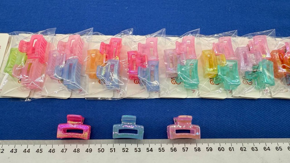 В упаковке 10 наборов по 3 штуки на бирке. Материал пластик цветной хамелеон 2,5 см на 2 см