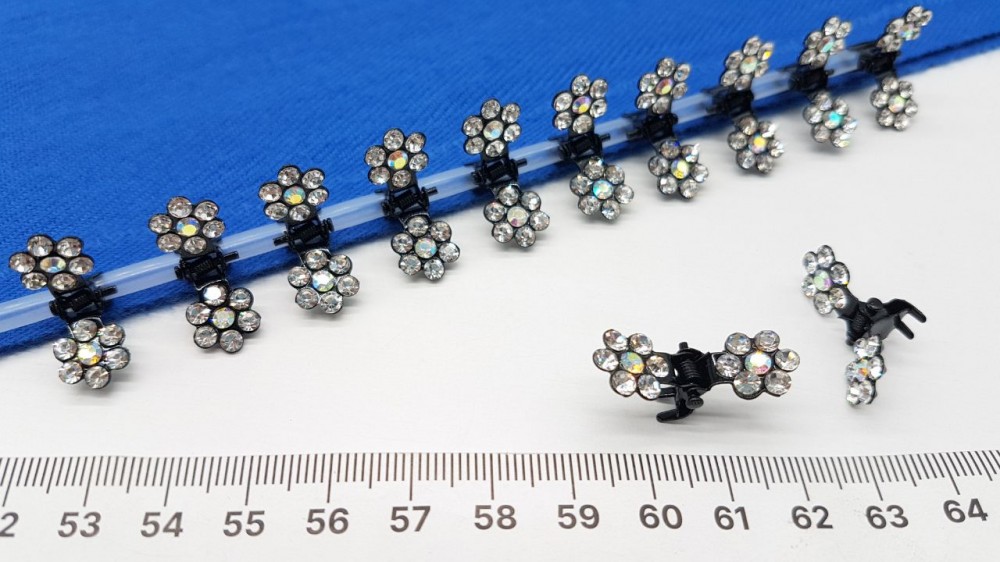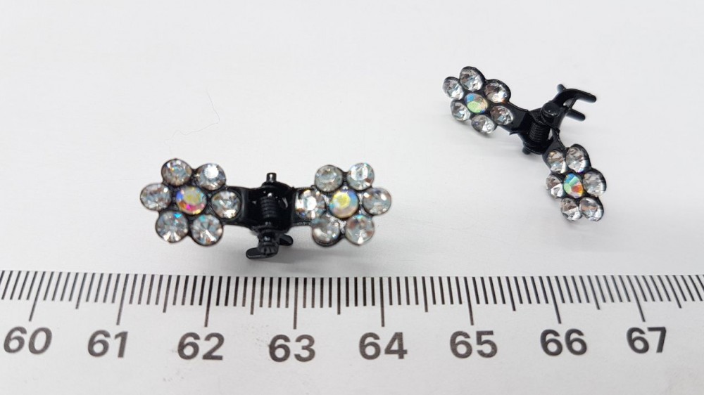 Краб металлический черный, цветочек из страз.  Размер краба 0.7 см