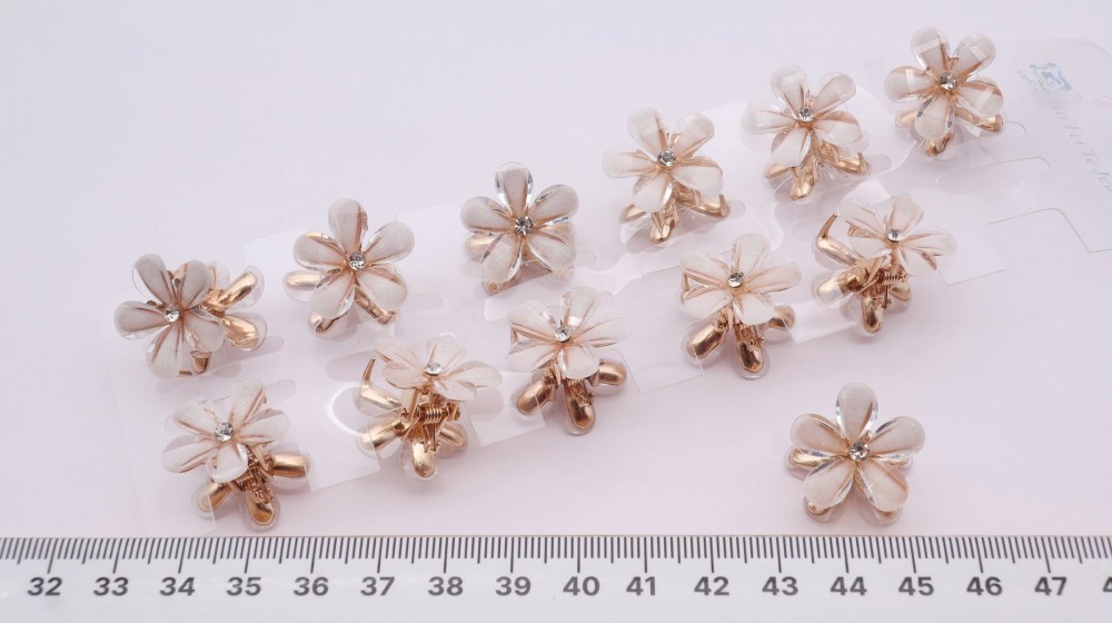 Металл, пластик с блеском, страз. Краб 1,3 см, цветок 2 см
