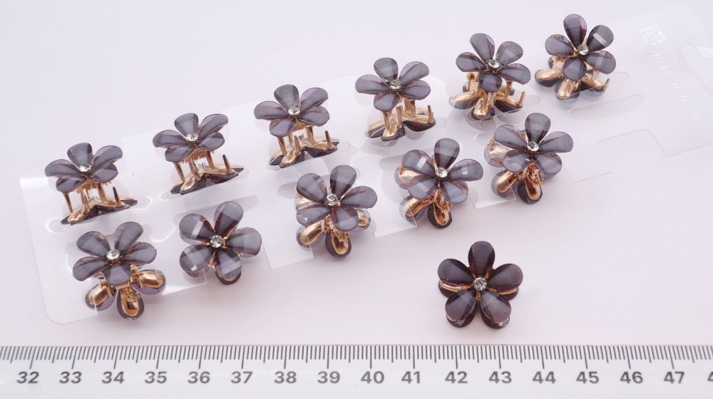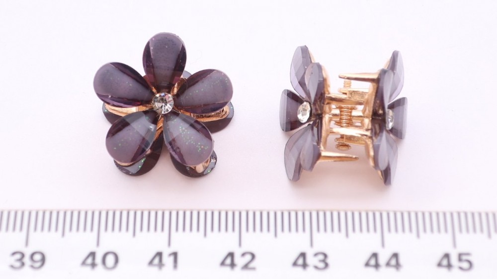 Металл, пластик с блеском, страз. Краб 1,3 см, цветок 2 см
