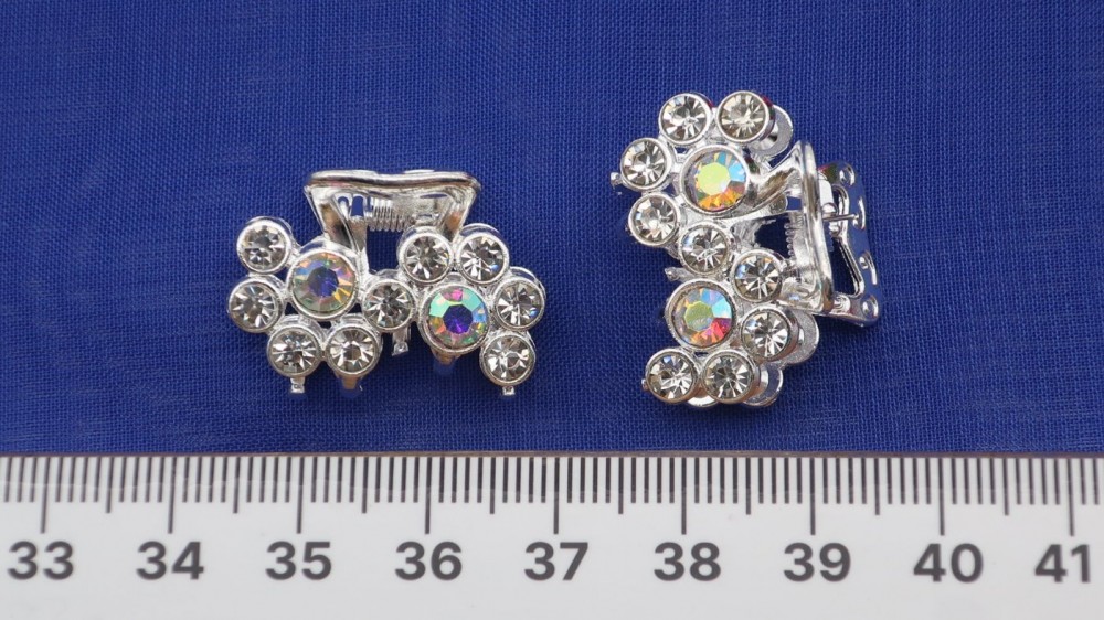 Металл, стразы. Длина 2,5 см., высота 1,7 см.
