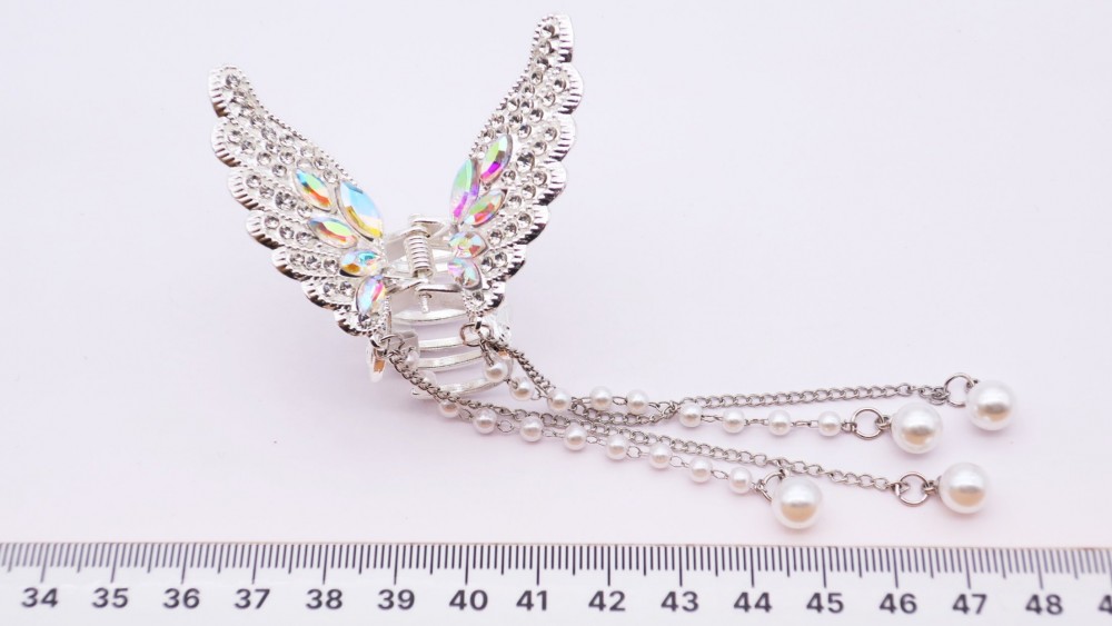 Крабы для волос бабочка серебро 5,5 см RKK-1388
