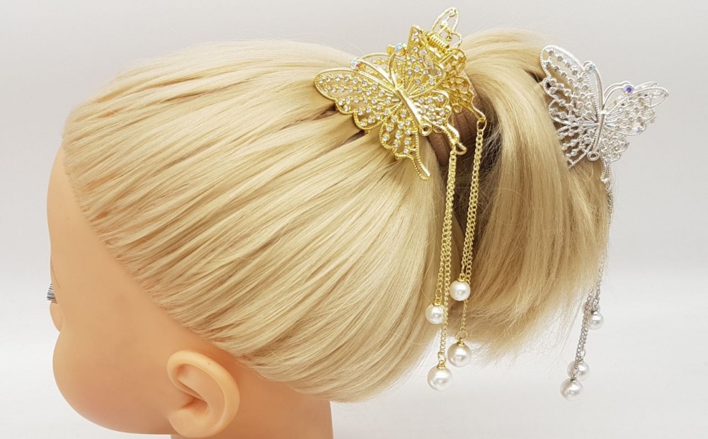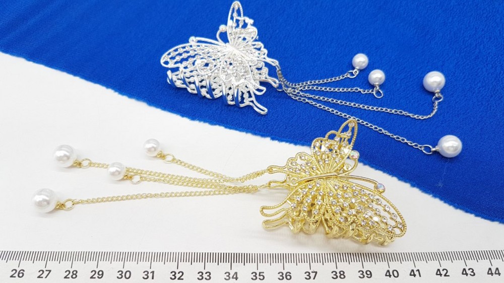 Крабы для волос бабочка серебро золото 3,5 см RKK-1264