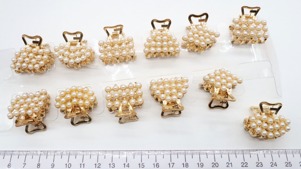 Крабы для волос микс жемчуг золото 2,5 см LUX-67