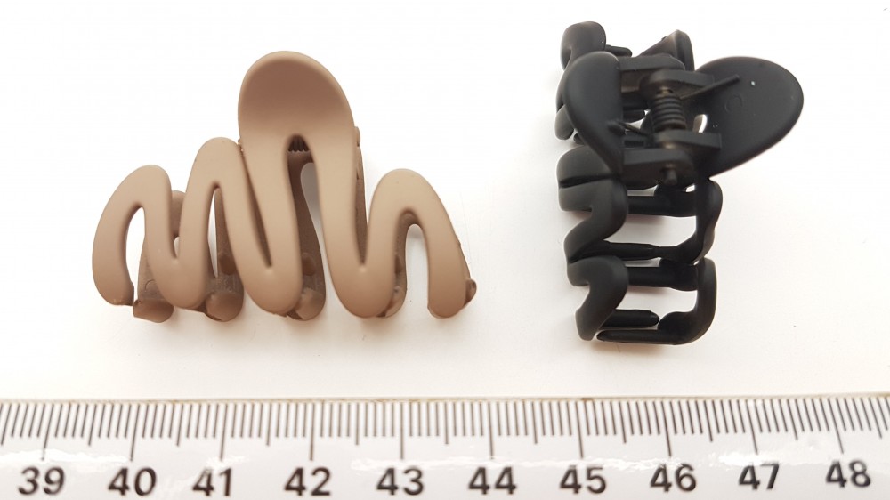 Матовый пластик, металл. Длина 4,5 см, высота 3 см