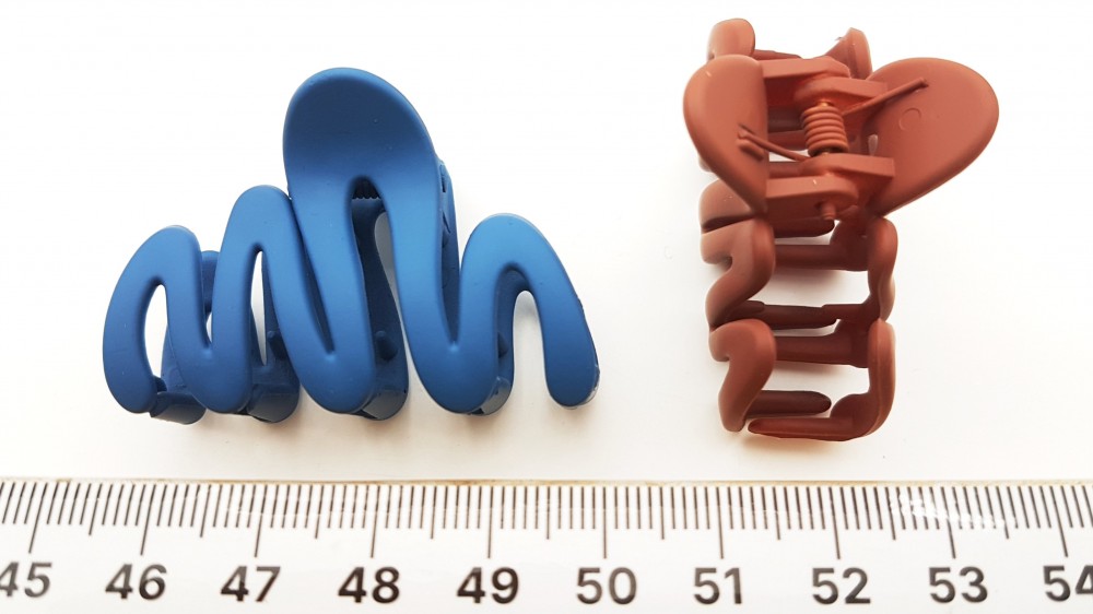 Матовый пластик, металл. Длина 4,5 см, высота 3 см