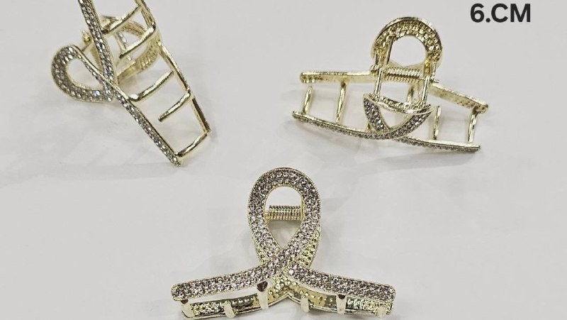 Крабы для волос золото 2 ряда страз 6 см D2-045