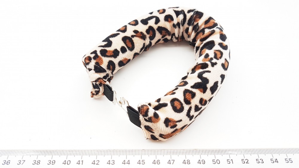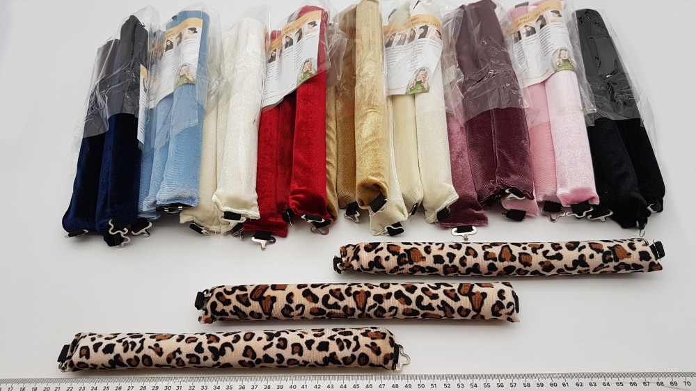 Бархат, валик из поролона, металлические крючки на резинке. Длина - 26 см, диаметр 3 см.