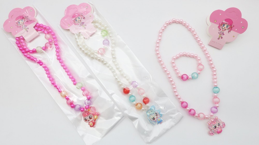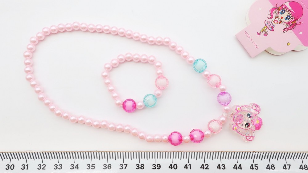 Пластик, бусины, резинка. Фигурка 2,5 на 3 см. Набор: бусы, браслет