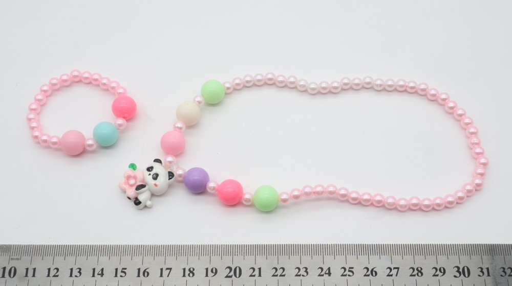 Пластик, жемчуг, резинка. Набор: бусы и браслет.