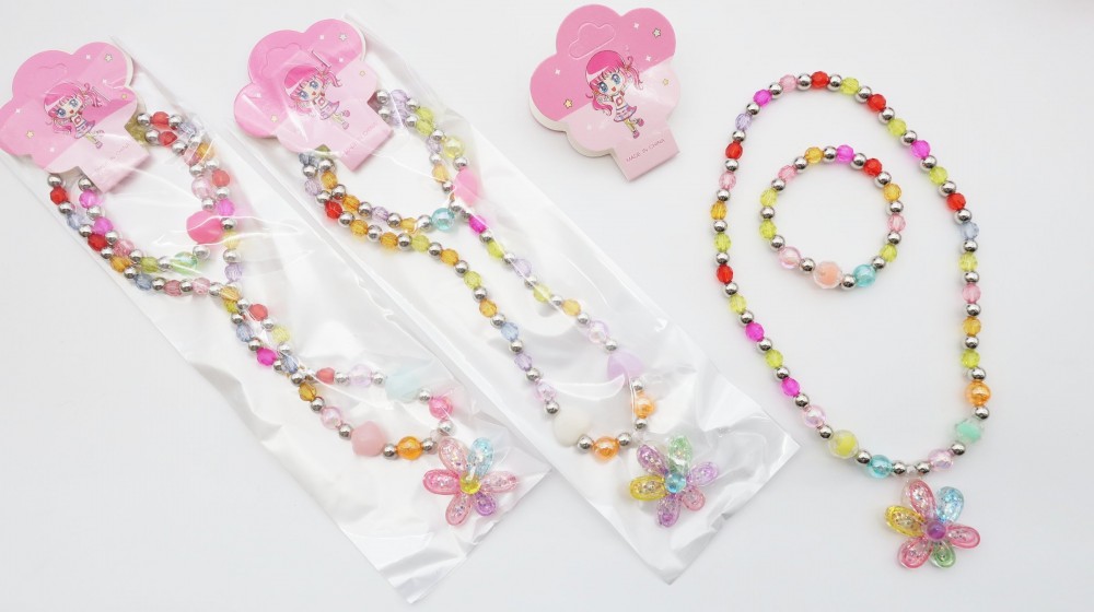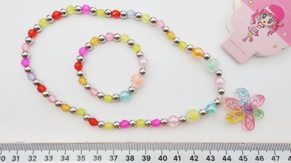 Пластик, бусины, резинка. Фигурка 3 на 3 см. Набор: бусы, браслет