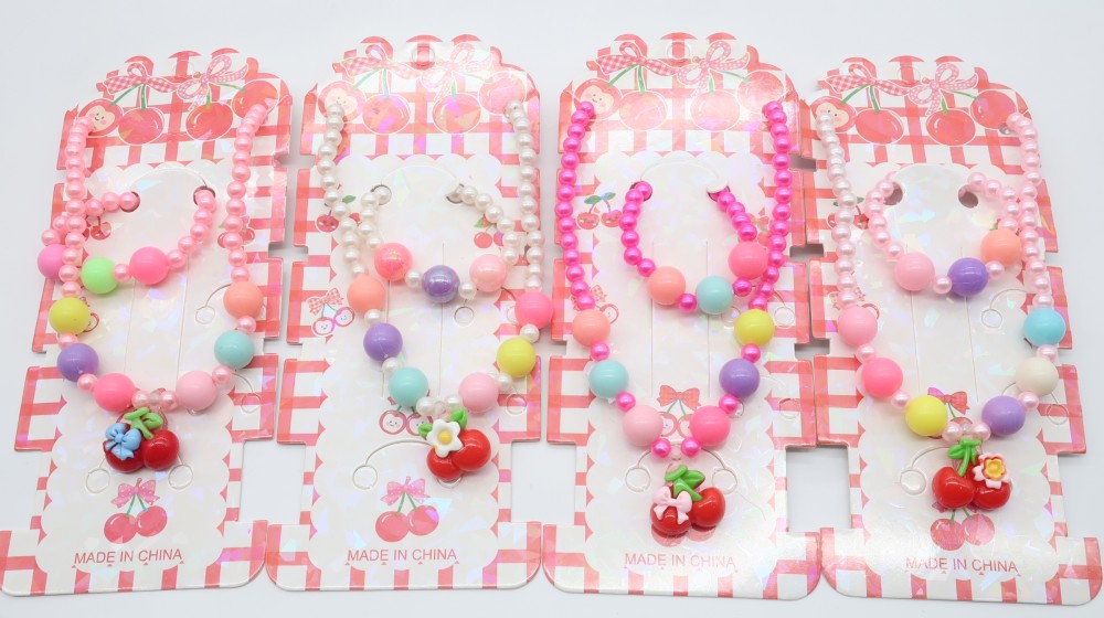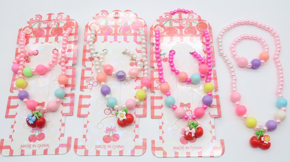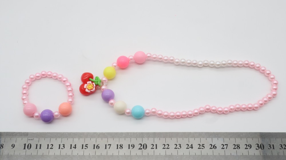 Пластик, жемчуг, резинка. Набор: бусы и браслет.