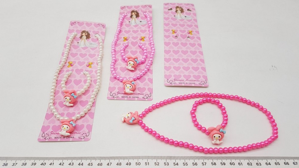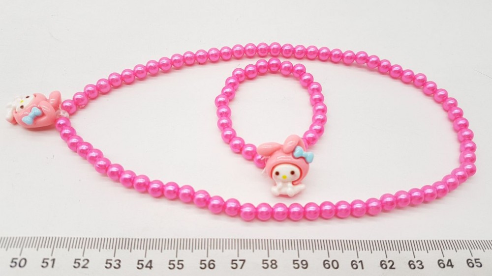 Набор бусы и браслет с подвеской зайка розовая KG-4363