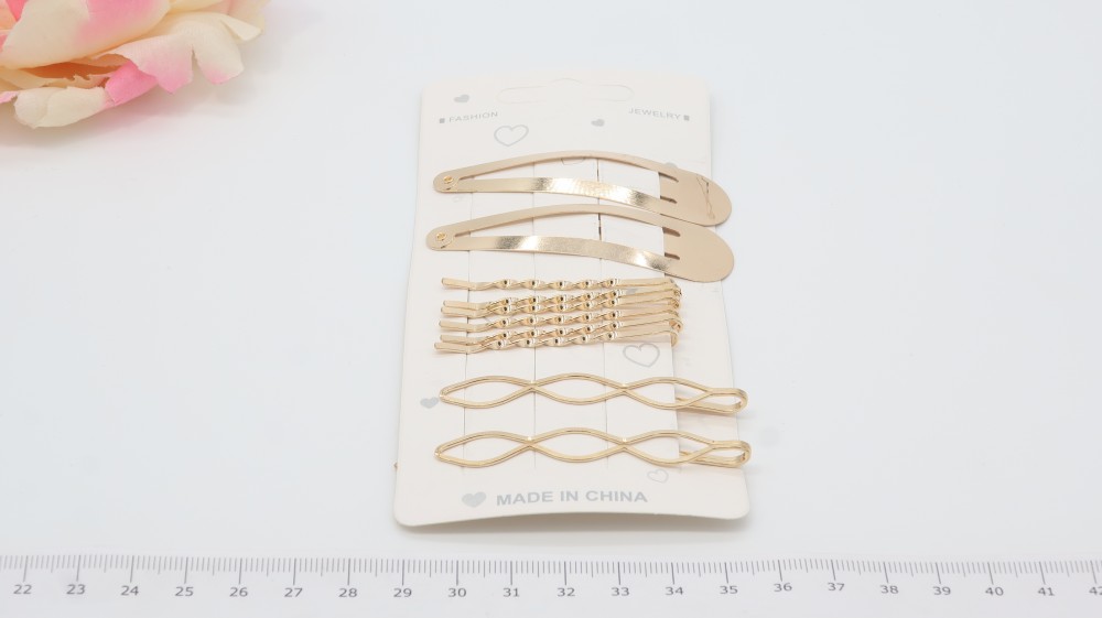 Металл. Набор: клик-клак 7 см.-2 шт., невидимка 5,5 см-6 шт., невидимка волна 7 см.-2 шт.