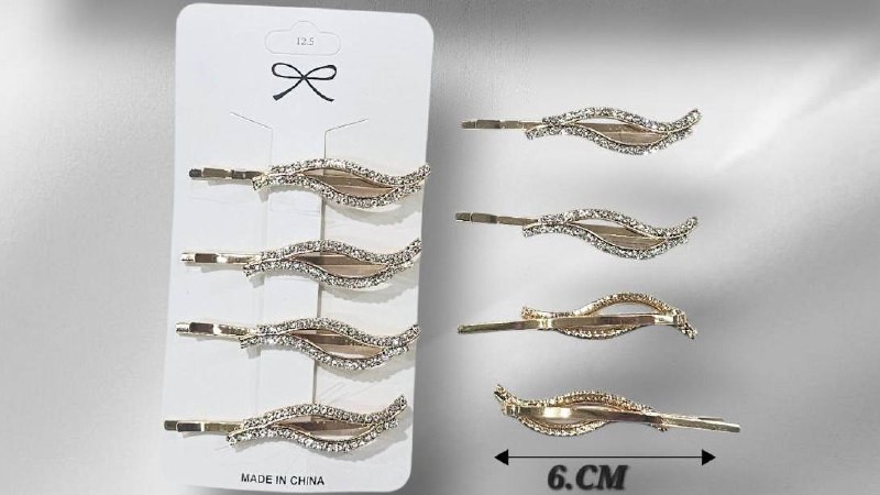 Невидимки для волос золото, стразы на бирке волна D2-869