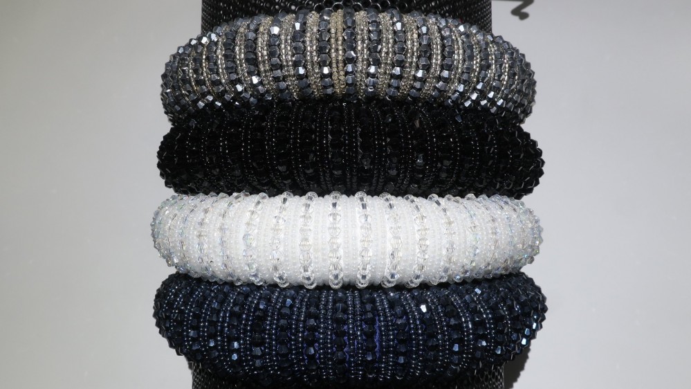 Бисер, стеклярус, ткань, поролон, пластик.  Ширина 3,2 см.