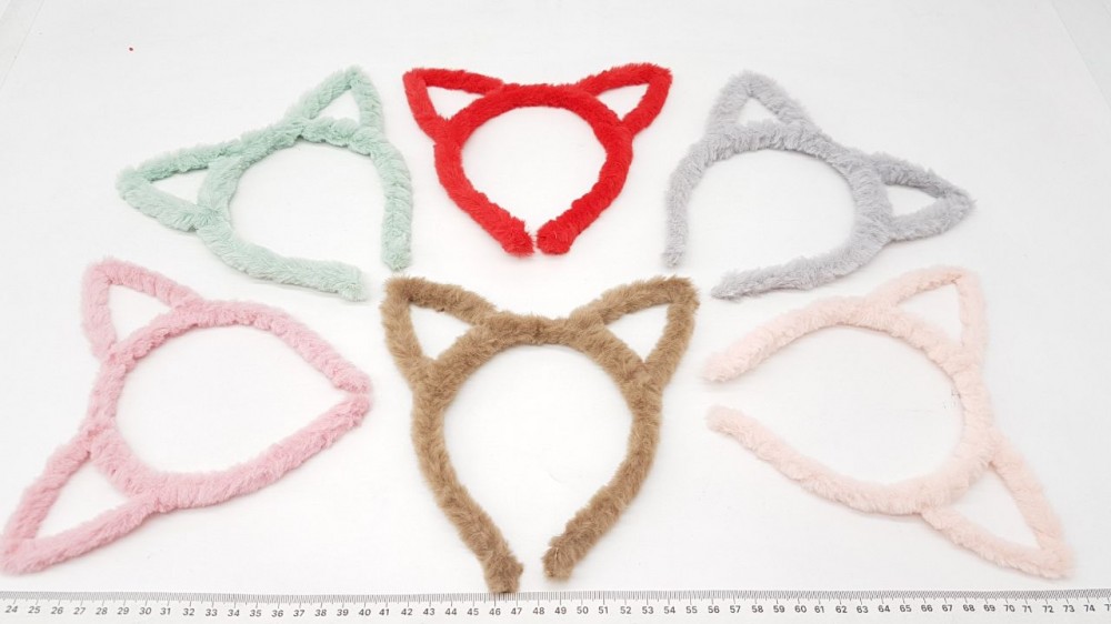 Ободки для волос цветные меховые кошка RKK-1119