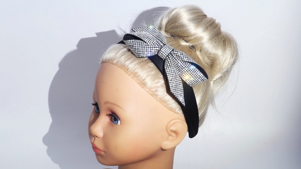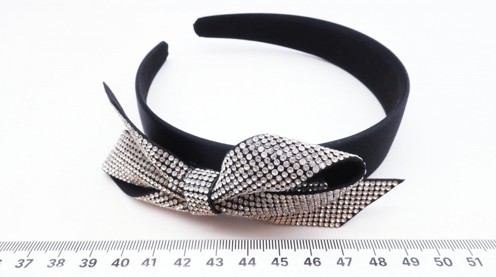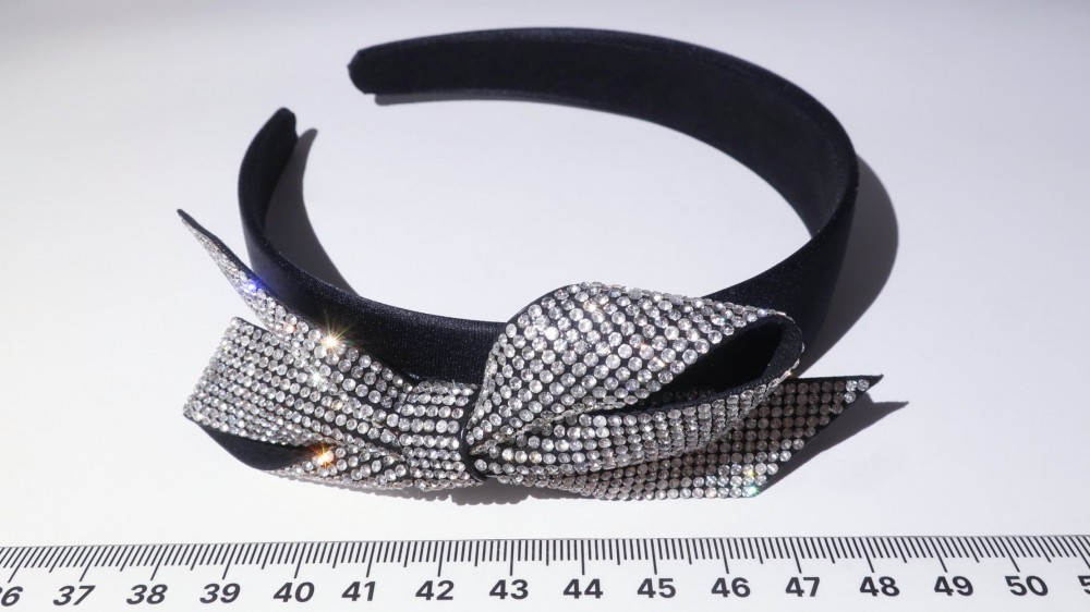 Атлас, стразы, пластик. Ширина 3 см., бант 12 на 5 см