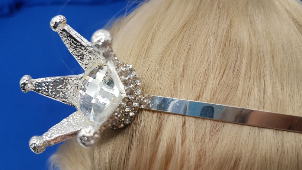 Ободок 38 см окружность, металл, стразы, корона 3,5 шир*2,5 выс