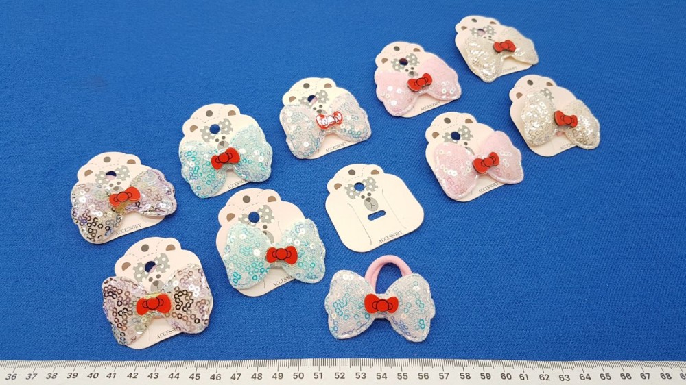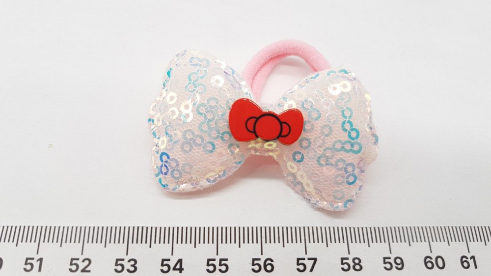 Диаметр резинки 3 см, украшение 6 см*4 см, пайетки, пластик