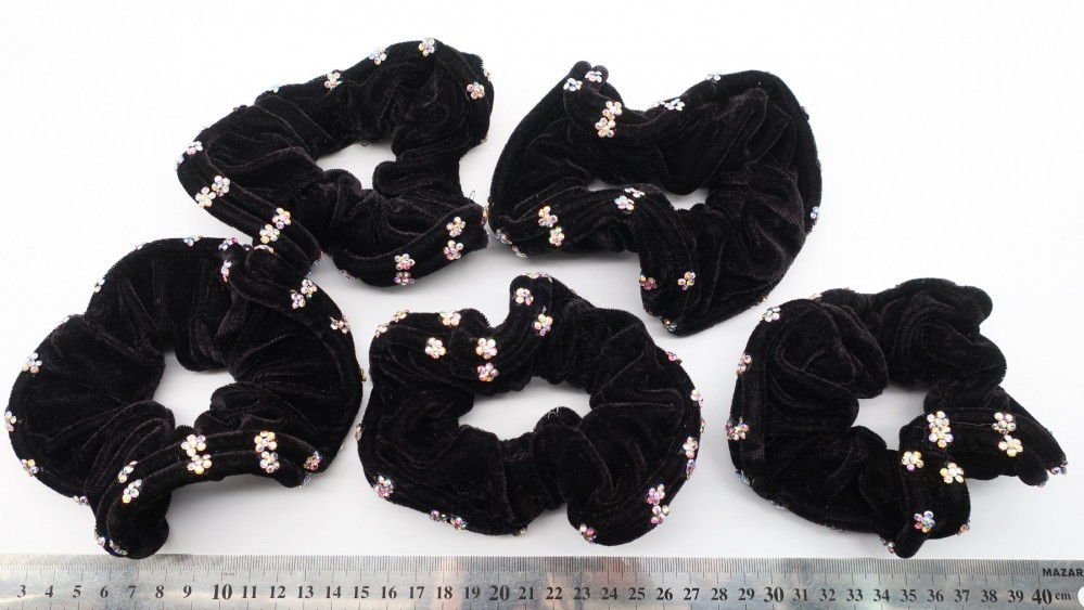 Резинки для волос бархатные 2 ряда цветов 13 см CH-4844