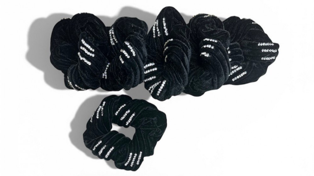 Резинки для волос бархатные чёрные со стразами 12 см KG