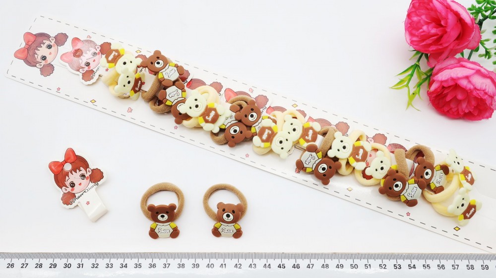 Нейлон, силикон. Резинка 3 см. Мишка 2,3 на 3 см.