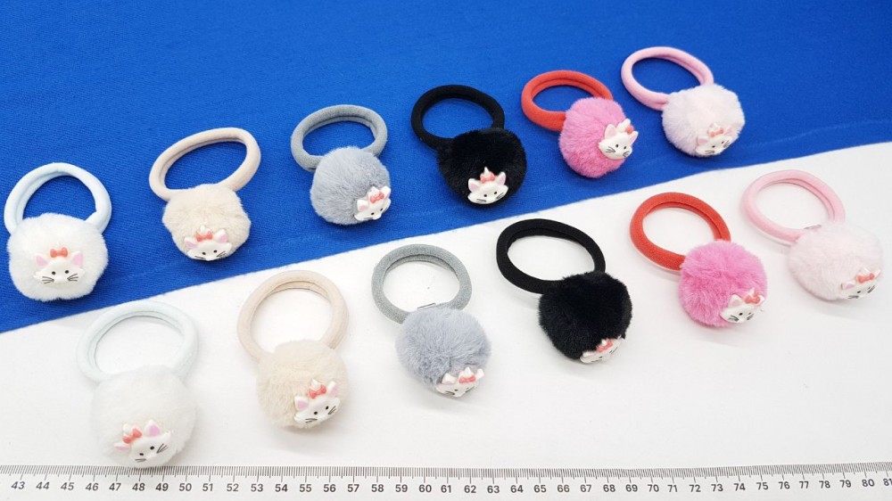 Резинка 5 см, шарик мех 4 см. Украшение пластик 2см*2см