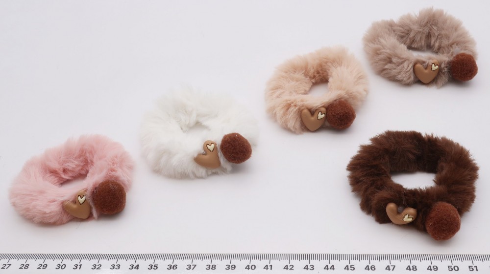 Резинки для волос с мехом сердце KP-5334