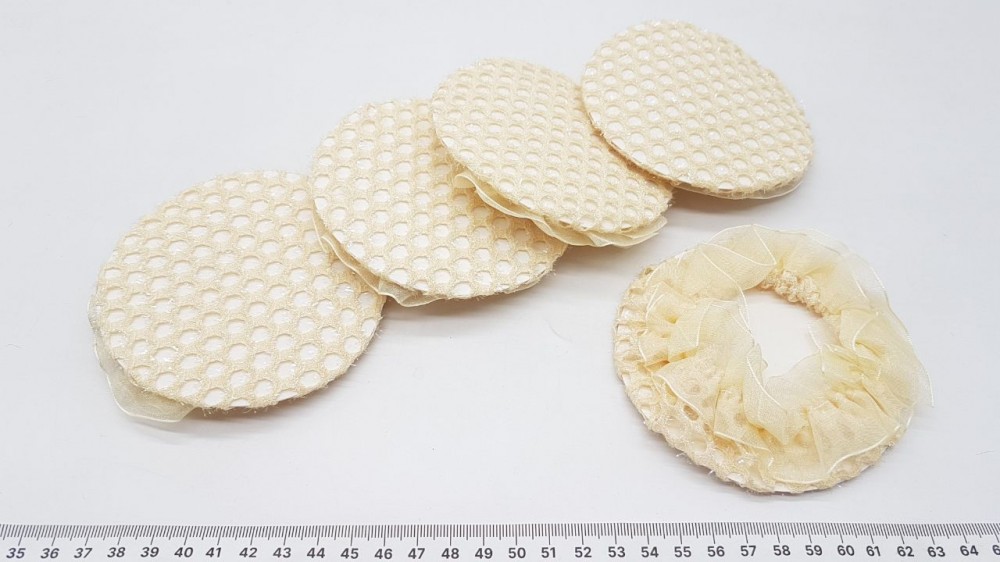 Сетка на пучок с оборкой. Ткань-стрейч, органза. Диаметр 10 см