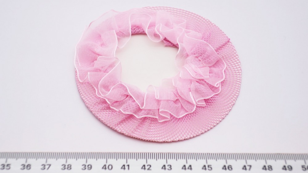 Сетки на пучок розовые стрэйч с оборкой 10 см FD-700